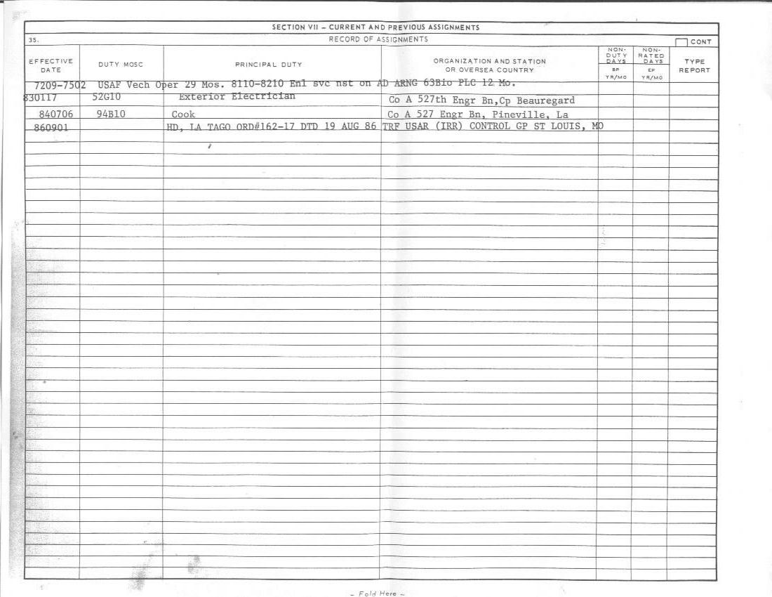 SERVED IN VIETNAM IN 1975 WITH THREE TOURS. ALSO SERVED IN OKINAWA & PANAMA