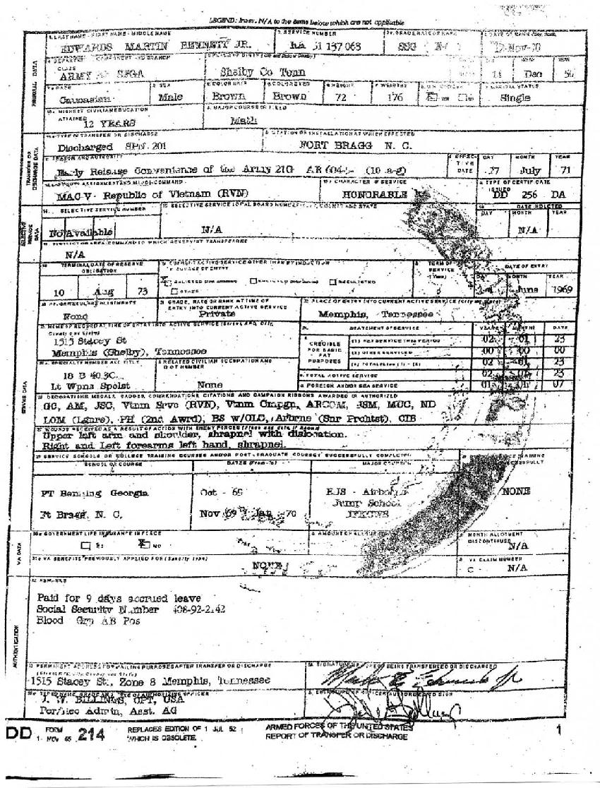 Here's a DD214 this asshole is passing around, click on the form and it will enlarge: