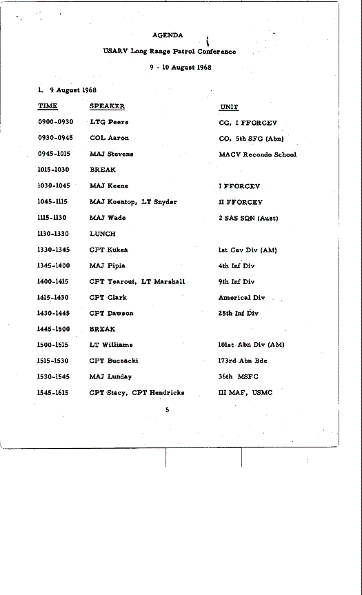 LONG RANGE PATROL CONFERENCE, MACV RECONDO SCHOOL 9 & 10 AUGUST 1968