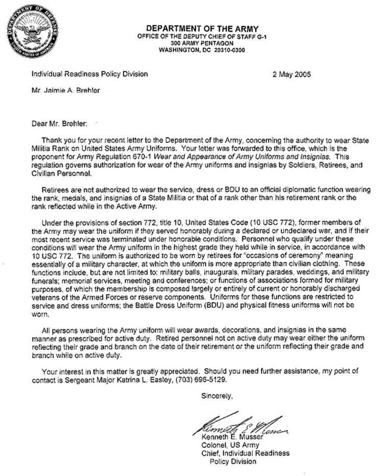 LEGAL WEARING OF UNIFORMS/MEDALS BY VETERANS AND RETIREES
